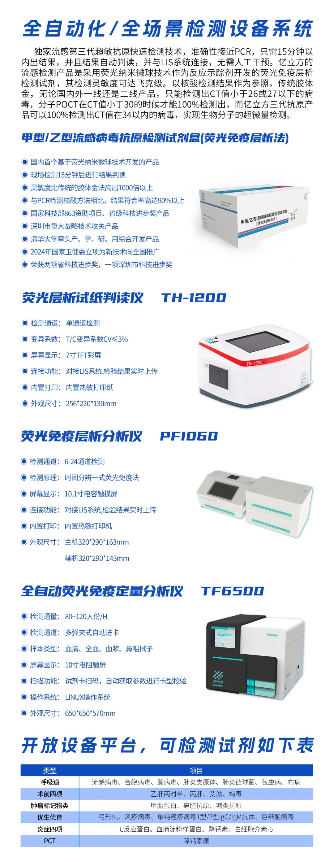 億立方生(shēng)物(wù)生(shēng)産γ☆的(de)甲型/乙型流感病毒抗原檢測試劑盒(§&熒光(guāng)免疫層析法)适用(yòng)于檢測人(rén)口咽拭子(zǐ)或鼻咽Ωσ拭子(zǐ)樣本中的(de)甲型/乙型流感病毒抗原,是(shì)₹¶€全國(guó)首個(gè)采用(yòng)熒光(guāng)×↓免疫層析法針對(duì)流感病毒抗原進行(xíng)檢測的(de)産品,該産品采用(yòng)熒光(guāng)納米微(wēi)球作(zuò €)為(wèi)反應示蹤劑開(kāi)發的(de)熒光(guā£→★©ng)免疫層析檢測試劑,其檢測靈敏度是(shì)π>§"傳統膠體(tǐ)金(jīn)産品的(de)1000倍,γ✘相(xiàng)對(duì)傳統膠體(tǐ)金(j•₽īn)産品在臨床上(shàng)應用(yòn αγg)臨床準确性提高(gāo)到(dào)90%,大(dà)大(dà)降低(dī)漏檢率。≈®₽&此外(wài)該檢測試劑操作(zuò)簡單、反應時♣₽β(shí)間(jiān)短(duǎn)、操作(zuò)不(bù)受實驗條件(jiàn)和(hé)®∏ 場(chǎng)地(dì)的(de)限制'σ(zhì),并且配有(yǒu)專門(mén)的(de)自(zì)動化(huà)儀器±±✘ε(qì)進行(xíng)結果判讀(dú),讓結果判讀(≤™★dú)更為(wèi)精準快(kuài)速。