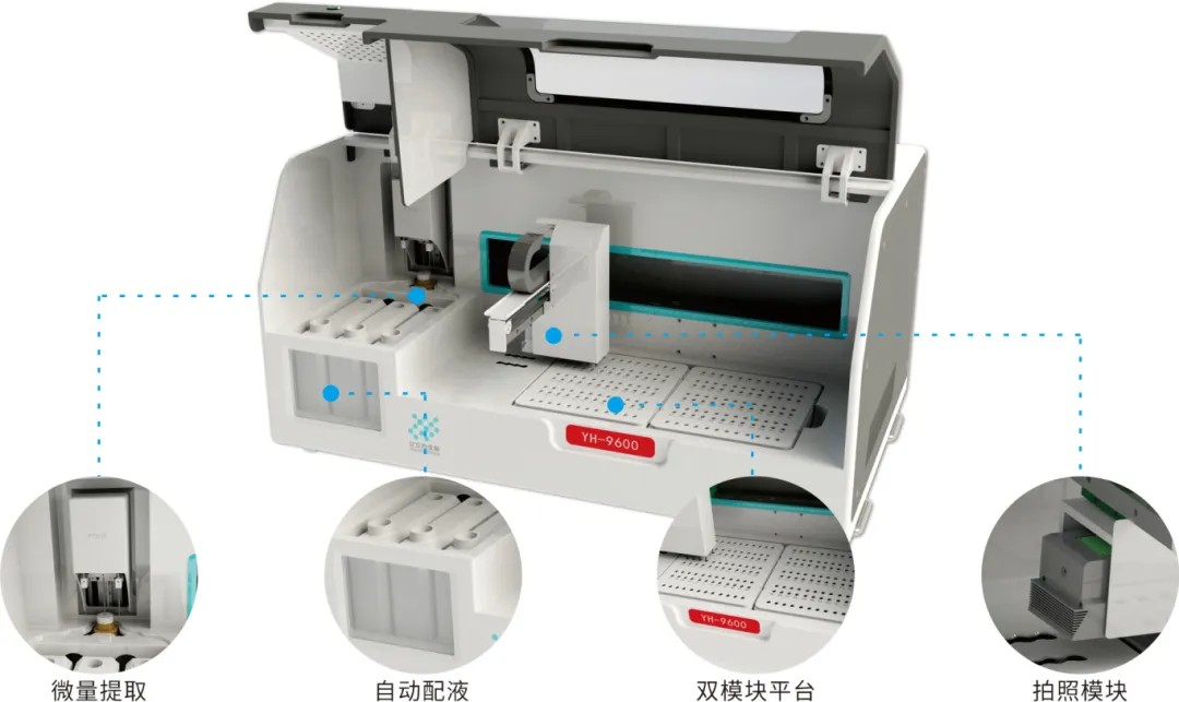 全自(zì)動核酸分(fēn)子(zǐ)雜(zá)交儀YH-9600:雜(zá)交、洗膜、PO•λ€D孵育、洗脫、顯色全流程一(yī)體(tǐ)機(jī),雙模塊,同時(shí)₽↕¥做(zuò)地(dì)貧、耳聾,高(gāo)效運行(xíng),全國(guó)獨©♣家(jiā)技(jì)術(shù),中間(jiān)無需人(rén)工(gōng)幹預,最大(§☆dà)可(kě)實驗 96人(rén)份,每個(gè)平台分(∞★fēn)别可(kě)以完成48人(rén)份量。